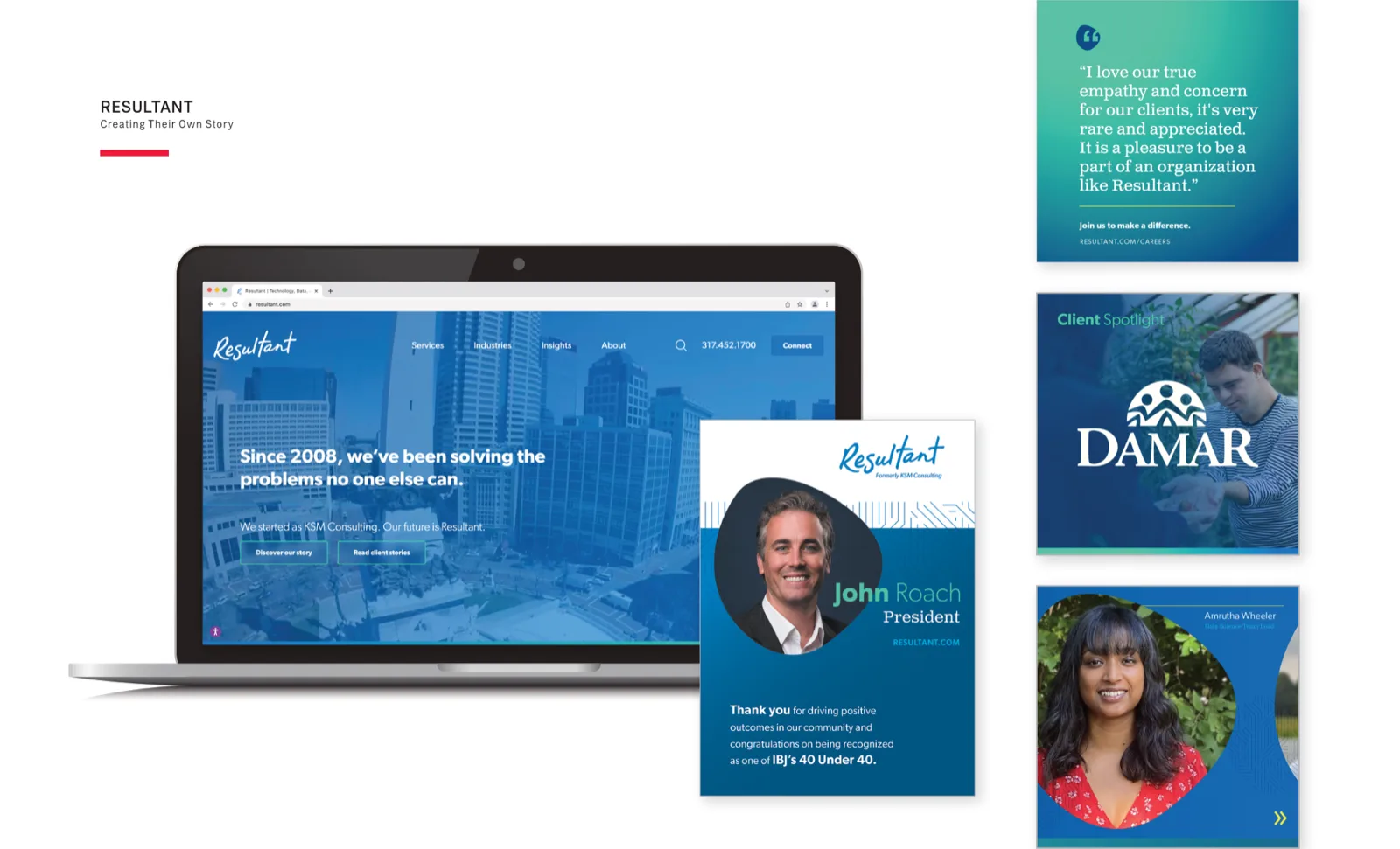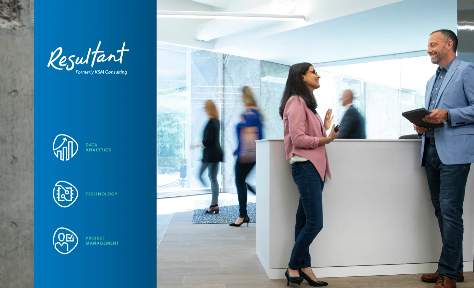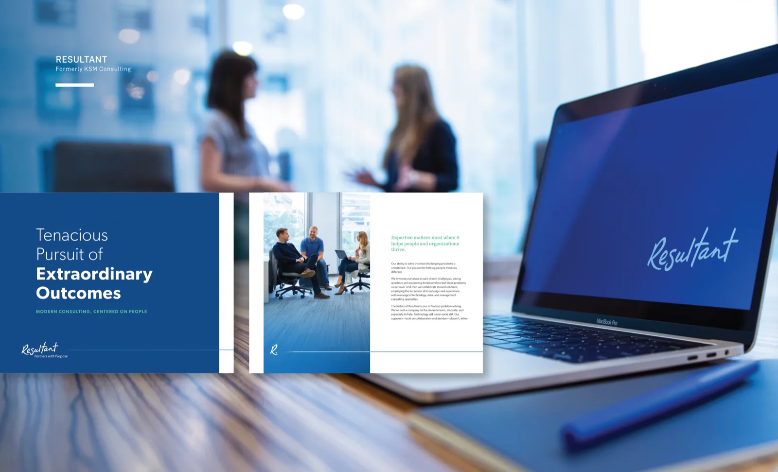Full brand engagement for KSM Consulting's transformation into Resultant — honoring existing equity while signaling a bold next chapter.